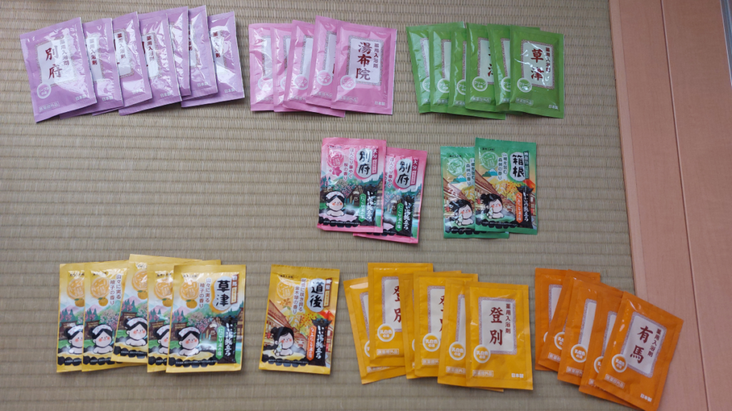 例年挑戦している、初売りの「入浴剤詰め放題」、えーっ!今年は300円なの? 果敢に挑戦した結果は39袋でした。 しばらくは物理的にも心地よく入浴できるし、温泉気分に浸れますなぁ〜