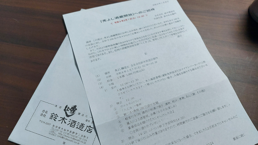 毎年申し込むけどなかなか当たらない、鈴木酒造の酒蔵開放。今年こそと願いを込めて応募。今年はそろそろ当選する頃じゃないかと期待していたところ、先日当選を知らせるメールを受け取り、今日招待状がとどきましたぁ~!